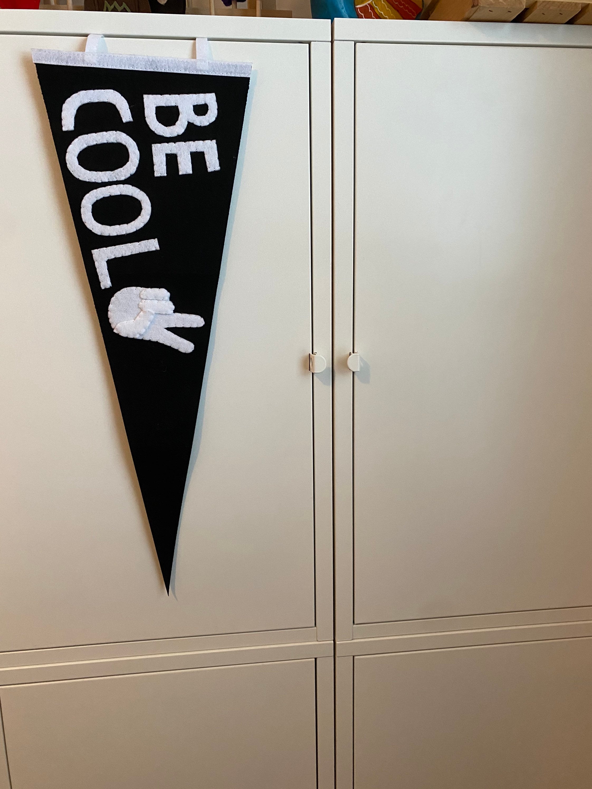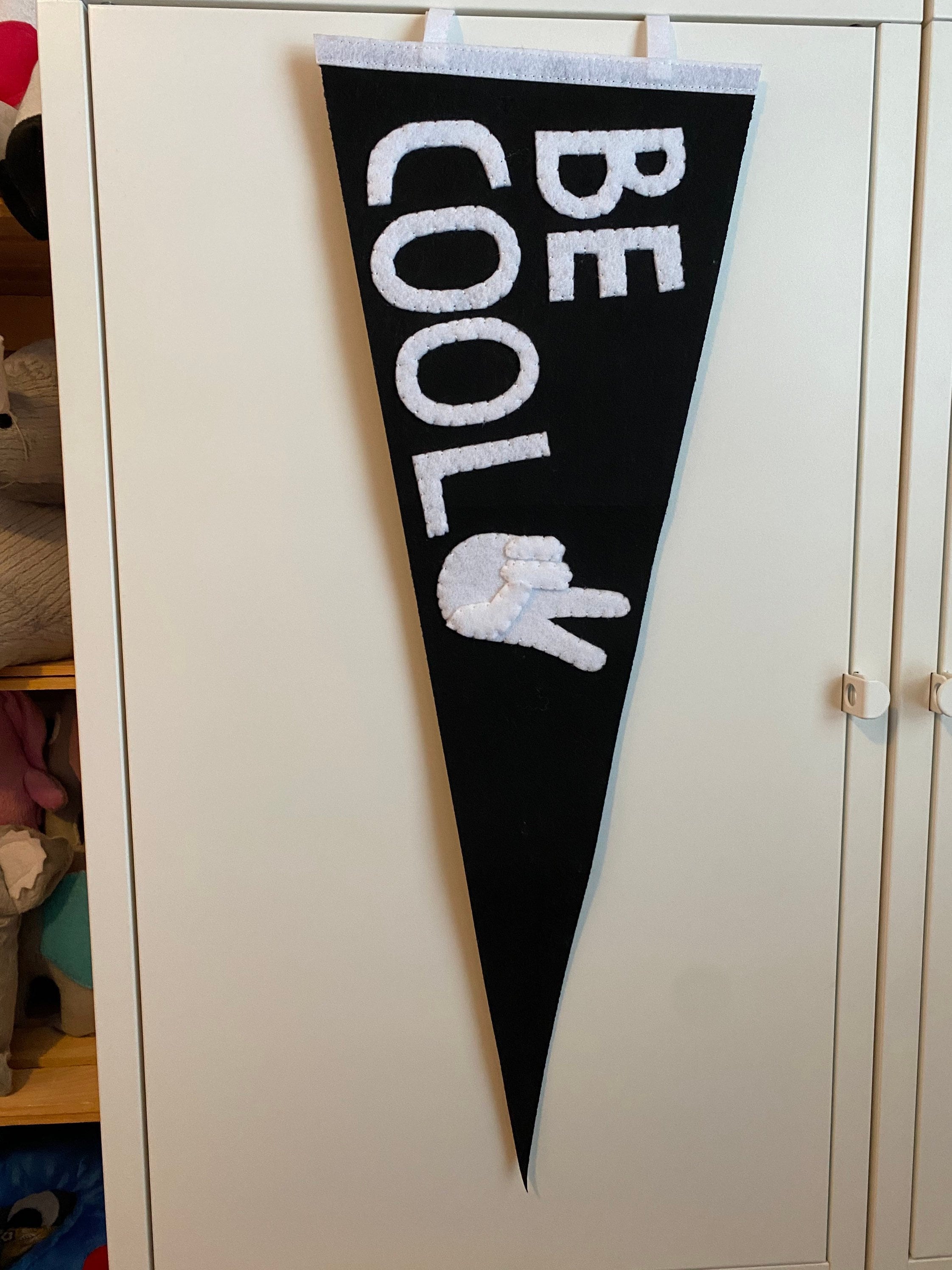 A perfect reminder to yourself and to others that we should all strive to be a little cooler. Pennants are 24" x 9" and can be hand washed with water and mild soap if needed.